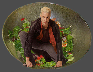 "But I don't like cucumbers!" Spike protested. Xander shook his head and continued to slice them into the salad in front of Spike. It really wasn't fair. There should be an age after which you couldn't be forced to eat your green veggies. A hundred, say. Maybe a hundred and two for the really immature, which he, Spike, was not. So there.