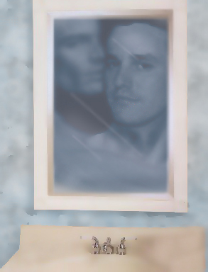 He dips his toothbrush under the water. Squeezes out a line of Crest, and, after he's put the tube away, catches his own eyes in the mirror. He winces, and the face before him frowns. Xander looks away, at the water he's left running in the sink. When he looks back up, he's staring at a nervous grin. Mirrors confuse Xander. Always have. It's like watching an alien creature, sometimes, that lives inside the door to the medicine chest. It's sneaky -- it looks like him. He smiles, it smiles. He sticks his tongue out, his reflection dutifully extends and wiggles and lets him know he really needs to stop doing that because it's disturbing. It's just him, encased in a slightly blurry silver rectangle, like an interactive TV: the Xander Harris Show, playing nightly for your amusement. A funny-looking face with a biggish nose and a thinnish smile, and dark, bushy eyebrows that he's gotten more comfortable with as he's grown into them. But when he's just turning away, he thinks sometimes that his reflection winks at him. If he stares directly into the glass, into his own eyes, studying the tiny brown and gold lines within them, Xander sometimes knows for sure that the brain behind those eyes, on the other side of the mirror, is thinking something totally different from him. That guy in there knows something he doesn't, and it irritates Xander, as much as it creeps him out, because he's silently smug about it. Sometimes Xander looks over that guy's shoulder, into the other bathroom. Same elephant planter on the top shelf of the organizer, with the dead fern still hanging limply over the side, though the trunk points in the opposite direction. Same tasteful pale blue paper on the walls, that Anya bought at Shop and Save because there was no point in paying twice as much for the same thing at the Home and Garden store, and she liked pretty things, but she wasn't stupid, thank you very much. If he peers deeper into the distance, through the door that opens to the left instead of the right, into the hallway that goes off the wrong way as well, he can almost imagine he'll see her there. Passing by in red silk underwear and one of his shirts, on the way to defrost breakfast. Ducking back in to kiss him on the chin and warn him not to be late for work and tell him he missed a spot, shaving. Maybe, in that world where he's left-handed and his cheek has a little white scar-scratch on it from the place where her engagement ring hit the mirror when she threw it at him, she's still there. Maybe that's why his reflection's so smug about it all. *He* was probably smart enough to leave it in the drain, and calm her down, talk it through, say the right words to stop her from walking out the door and down that wrong-direction hallway and out into the great wide world, whatever it's like on the other side of the mirror. Is there a Hellmouth, a Slayer? Has that Anya never been a vengeance demon? Probably, at least, Xander's reflection was bright enough not to have grabbed the pipewrench from under the sink, undone the spillcap from the bottom of the u-bend, and pulled out the ring. Washed it off and handed it back to her, because he knew she wanted it, even if she no longer wanted to play the game of whose feet were colder, who would come up with the bitterest regret once that ring was joined by the wraparound one on layaway at the jeweler's in Santa Barbara. That other Xander, if he doesn't have a wife, at least has a diamond ring in his pocket, the smarmy bastard. Xander has neither. Wants neither, when he's truly honest with the guy who laughs at him from the mirror. He doesn't need the ring, doesn't need the money it was worth, without Anya to spend it on, and would have ruined the wife, if he'd gotten that far. She saw herself becoming a shrew if she stayed, Xander shrinking into a sour, defensive liar, long before he did, but he knew it by the time she left. Knew she was right. He's not above hating her a little: imagining her now, begging him for another chance, down on her knees on the cold tile floor while he studies her calmly over his shoulder in the mirror, then dispassionately tells her to go to hell, before he finishes brushing his teeth -- but mostly he hopes she's all right. That she's found whatever she needs, in the world beyond the bathroom door, no matter which direction the hallway runs. He's never seen her for real, in the mirror, though he's lived in this town too long to think it isn't possible. Never glimpsed his reflection holding her, or anything, though once he thought he saw the guy say her name, and Xander is sure he didn't speak it himself. Didn't hear it, didn't feel his lips move, and Spike, who was leaning against the bathroom door, has never said anything to him about it. Spike does that a lot. Watches him, when he's in the bathroom. Oh, nothing disgusting; neither of them gets off on the idea of Xander sharing his private john-communing time, and he was raised to shut the door, anyway, even when the only other person in the place is a guy. A dead guy. He might share his apartment with the vampire, his shower, and definitely his bed, but there's some things a man does by himself. Spike watches him do everything else, though. Maybe it's that they're things he hasn't done in a hundred years. Brushing his teeth, because apparently Mr. Tooth Decay doesn't stand a chance against undead choppers. Shaving... Well, Spike's hair does grow, but Xander's never seen him shave. He thinks that face was just made never to know the touch of a razor, the cheeks too sharp to slide a blade down, the skin too unnaturally soft to ever grow more than a fine, white down that barely catches when Xander runs the backs of his fingers over it. And of course, looking in the mirror at himself. Wondering who's staring back. That's something Spike's never done, Xander's sure. Even if he could see himself there, the vampire has no questions about who he is. He has an unnatural curiosity about watching Xander do i